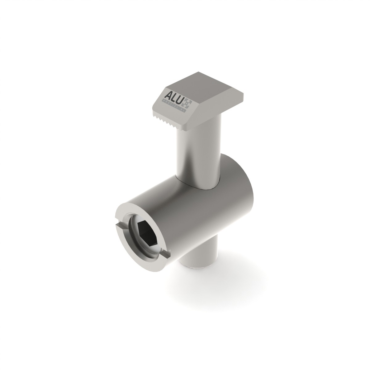 Das Schnellspannverbinder mit Hammer besteht aus einem festen Metall und ermöglicht eine rechtwinklige Verbindung von zwei Aluminiumprofilen, die leicht durchgeführt werden kann. Zur Montage muss ein Durchgangsloch der Größe D17 in eines der Profile gebohrt werden. Diese Bohrüng ist auch bei der kauf von Profilen mit zu Bestellen.