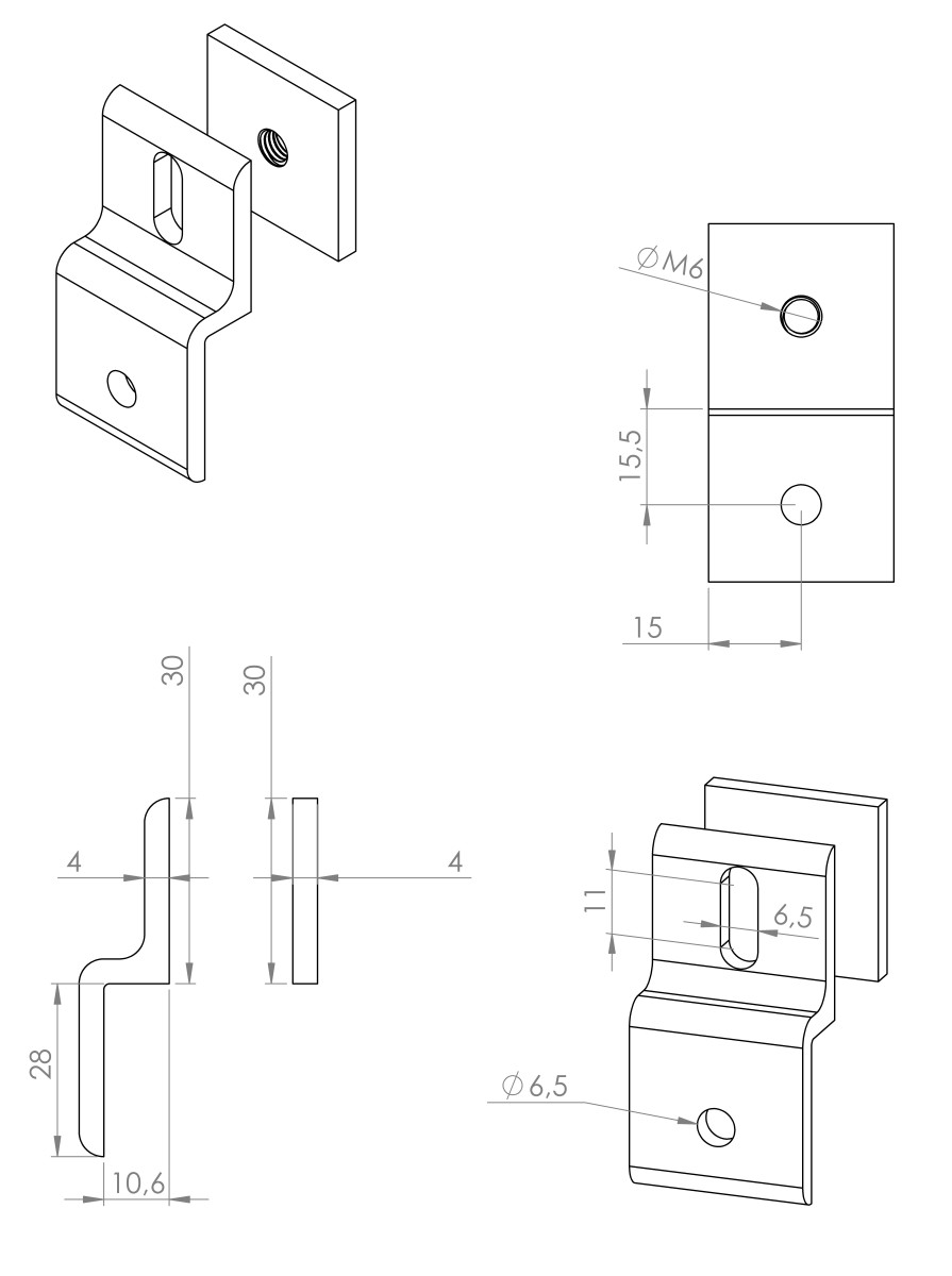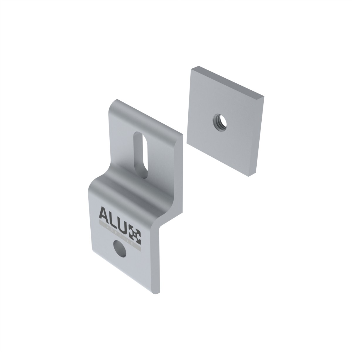 Dieser Plattenhalter ist aus eloxiertem Aluminium 6061-T5 gefertigt und ist eine gute Lösung für die Befestigung von Platten und insbesondere Drahtgeflecht an unseren T-Nut-Profilen aus Aluminium der Serie 30. Das Set besteht aus einer Halterung und einer Platte mit einem M6-Gewindeloch. Die Platte oder das Drahtgeflecht wird gesichert, wenn sie zwischen Halter und Gewindeträgerplatte festgezogen wird.