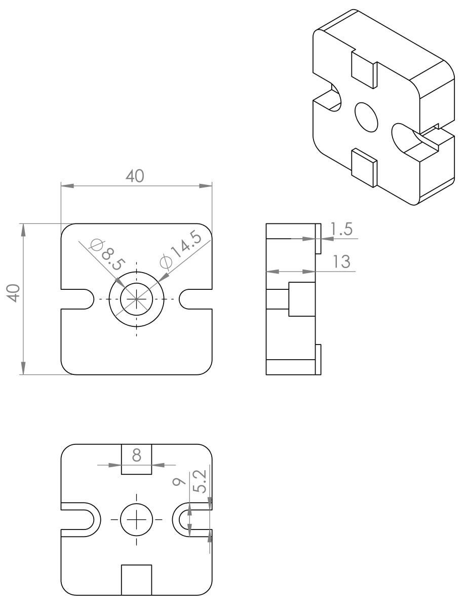 Erstelle stabile, saubere und kompakte Verbindungen in deinem Aluminiumprofil-System mit diesem Endverbinder für 4040 (40er Serie) Aluminiumprofile. Der Verbinder wird mit einer Schraube in die Stirnseite eines 4040 T-Nut-Profils montiert und anschließend mit zwei Schrauben und T-Nutensteinen an einem zweiten Profil befestigt. So entsteht eine steife, platzsparende Verbindung mit professioneller Optik—ideal für Maschinenrahmen, Schutzeinhausungen, Arbeitsplätze, Gehäuse, Robotik und modulare Konstruktionen mit T-Nut Aluminiumprofilen.