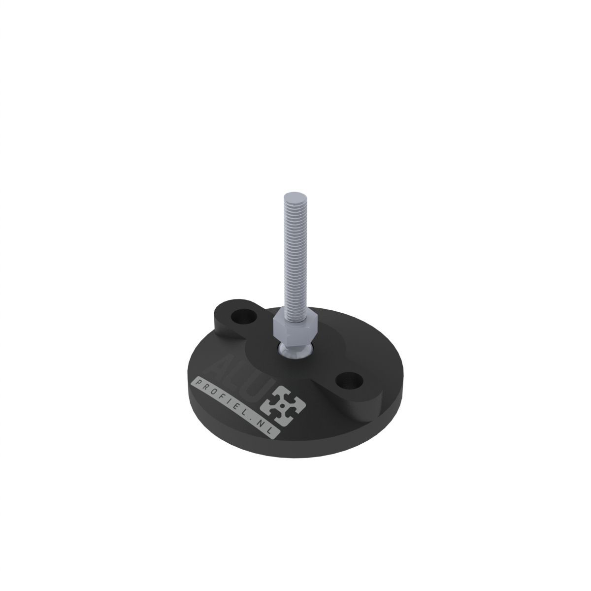 Kunststoff-Stellfuß mit Gummi-Dämpfungsring. Mit diesem 80 mm verstellbaren Fuß kann jeder Rahmen oder jedes Projekt aus Aluminiumprofilen problemlos nivelliert werden. Dieser verstellbare Fuß wird mit einer M8x50-Spindel geliefert. zum Einbau in 30- und 40-er serie Profilen.