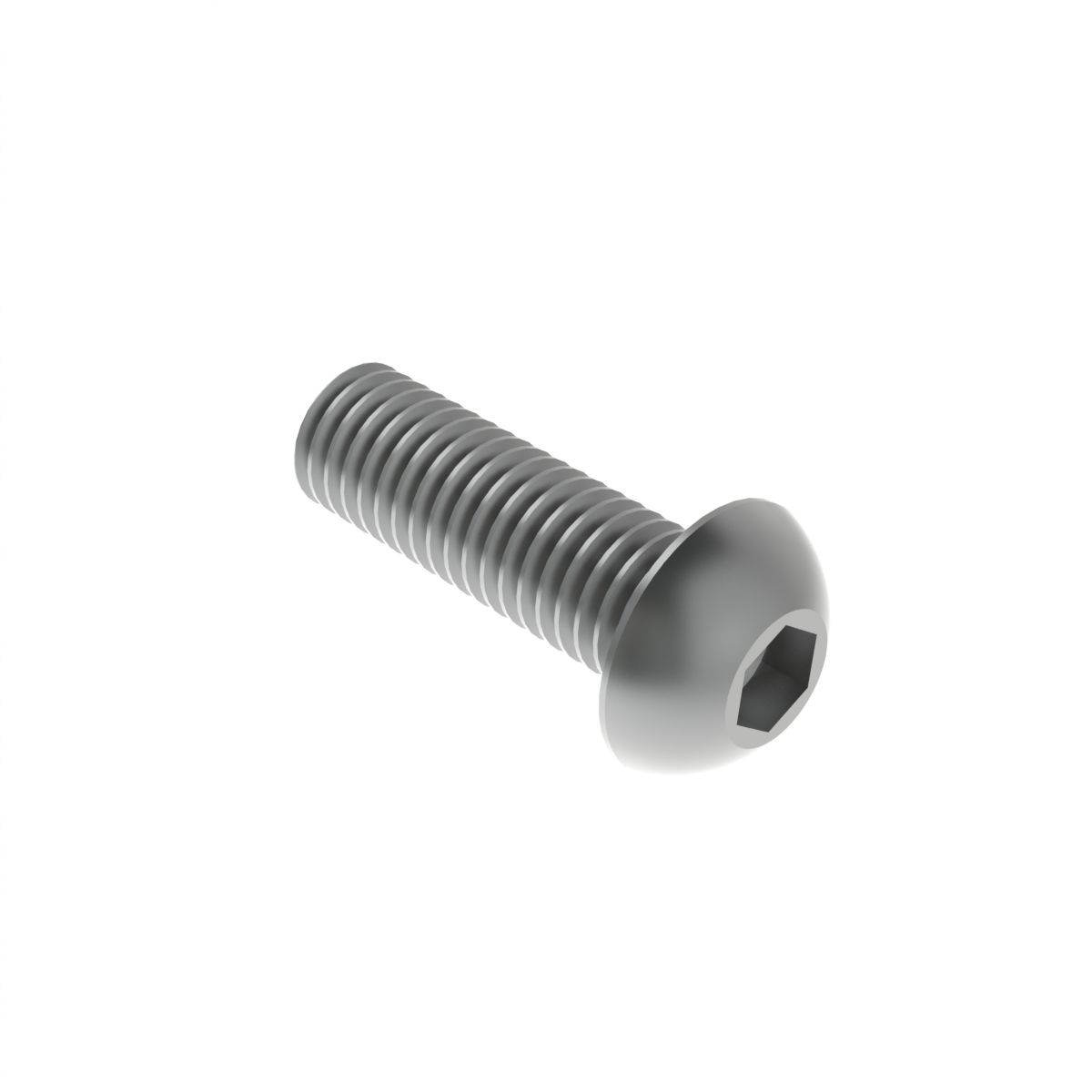 Rendering einer Linsenkopfschraube mit Innensechskant M10x20 (ISO 7380), verzinkter Stahl Linsenkopfschraube mit Innensechskant M10x20 (ISO 7380) – Maßzeichnung (L, dₖ, k, s)