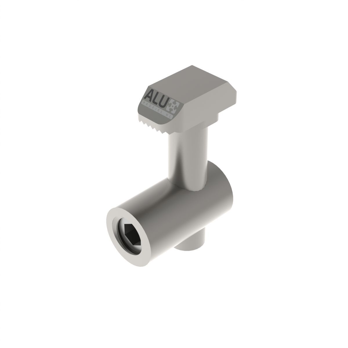 Das Schnellspannverbinder mit Hammer besteht aus einem festen Metall und ermöglicht eine rechtwinklige Verbindung von zwei Aluminiumprofilen, die leicht durchgeführt werden kann. Zur Montage muss ein Durchgangsloch der Größe D11 in eines der Profile gebohrt werden. Diese Bohrüng ist auch bei der kauf von Profilen mit zu Bestellen.