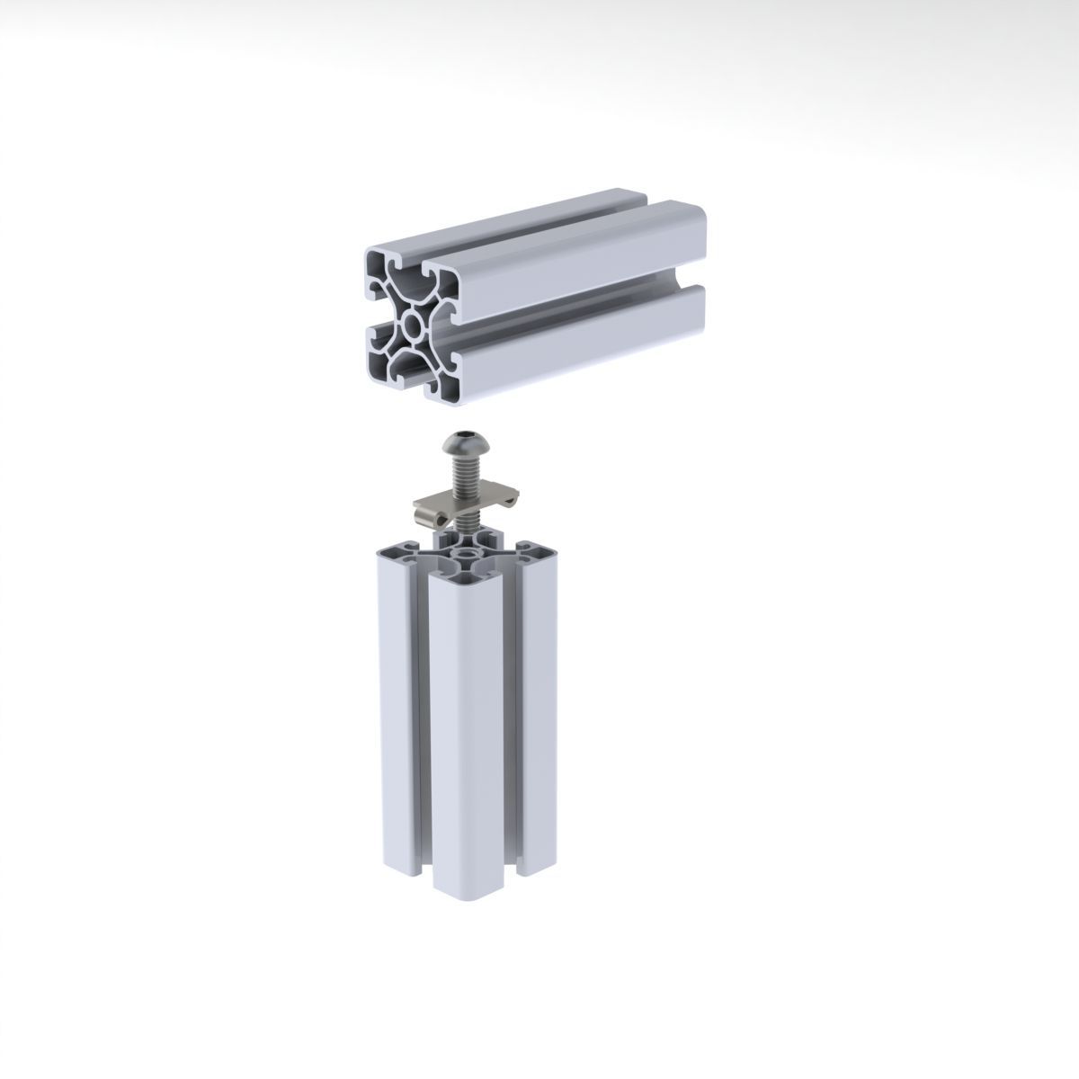 Diese Schraubenverbinder ist geeignet zur Verbindung von zwei Aluminiumprofielen. Dafür muss ein Loch in ein Profil gebohrt werden und Gewinde in das andere Profil gemacht werden.