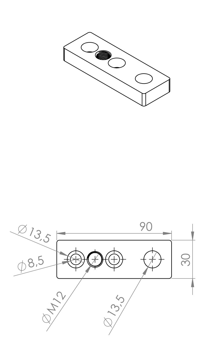 Transport- und Bodenplatte 30x90 M12/13mm für 30x60 Aluminiumprofil mit Nut